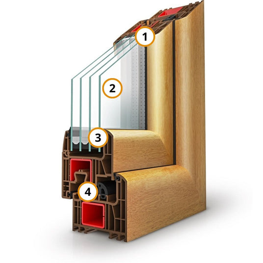 Das 7-Kammer-Profil der Klasse A aus Primärrohstoff mit einer Bautiefe von 82 mm sorgt für hohe Stabilität und exzellente Wärmedämmung. - Verglasung: