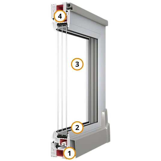 7-Kammer-System der Klasse A mit einer Einbautiefe von 82 mm. Verstärkter Rahmen mit Stahlprofil und C-Profil für erhöhte Stabilität.