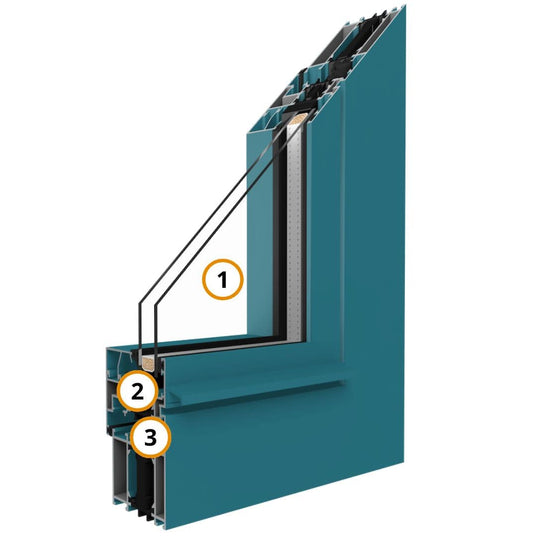 - Stabile Aluminiumkonstruktion mit 3-Kammer-System für optimale Isolierung und Langlebigkeit.