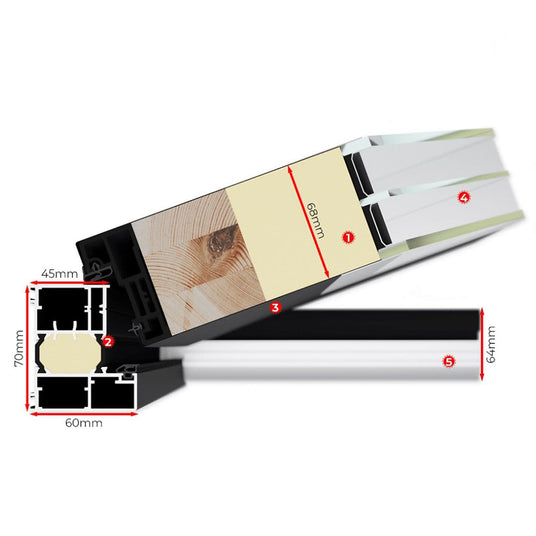 - Bautiefe: 70 mm, Ansichtsbreite des Rahmens 60 mm für eine kompakte und schlanke Optik.