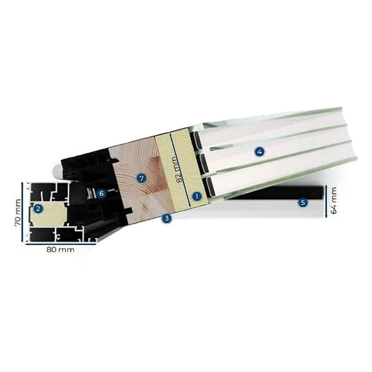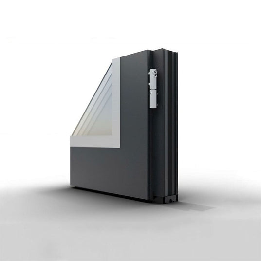 - Rahmen: Aluminium | thermisch getrennt | Außen flächenbündig | Beidseitig Flügelüberdeckend