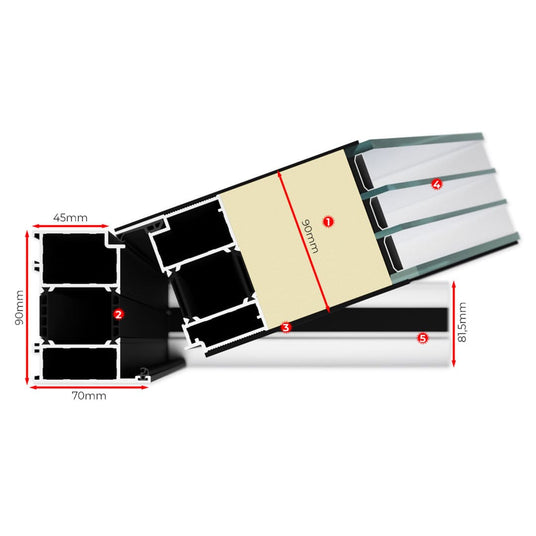 - Profilstärke: 90 mm für herausragende Stabilität und Isolierung.