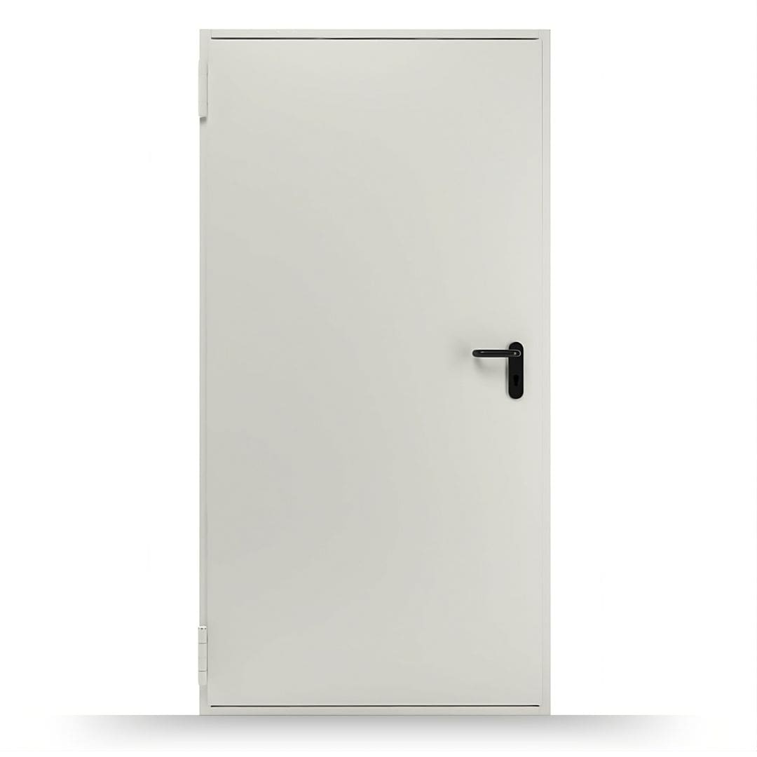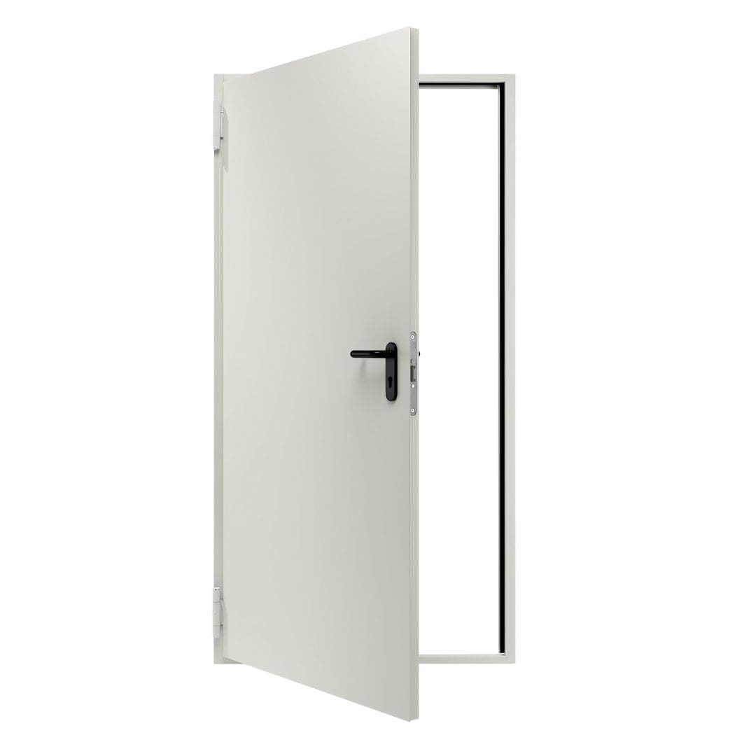 Die mitgelieferte Universal-Eckzarge aus 2 mm starkem Stahl ermöglicht eine schnelle und flexible Montage mit Diagonal- oder Ankerbefestigung – passend für Mauerwerk, Beton oder Porenbeton. Die Oberfläche von Türblatt und Zarge ist verzinkt und pulverbeschichtet in Grauweiß (ähnlich RAL 9002) – ideal für schlichte Einbausituationen.
