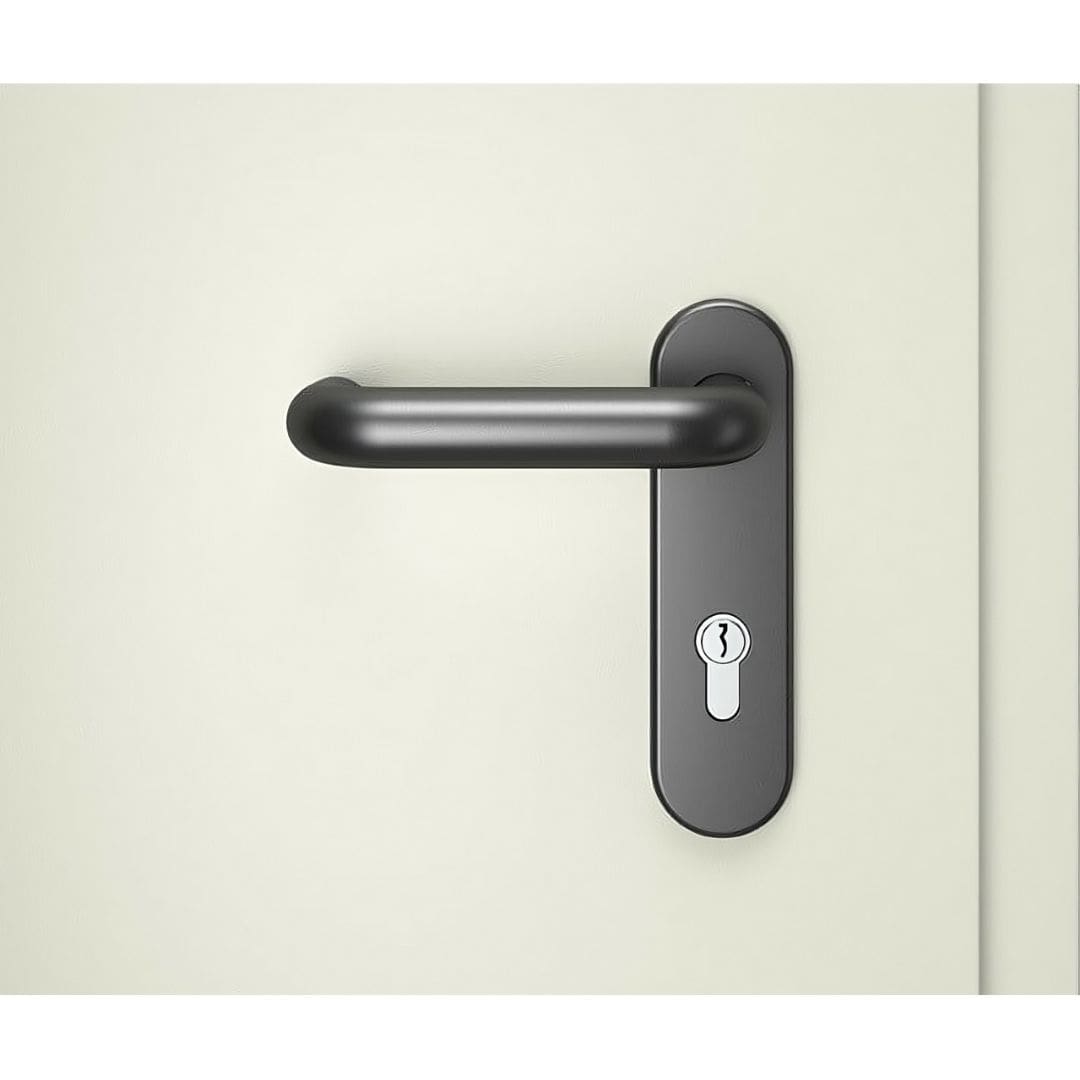 Die Tür kann sowohl DIN links als auch DIN rechts eingebaut werden und wird montagefertig mit pulverbeschichteter Eckzarge, Einsteckschloss, Drückergarnitur und allen Befestigungsteilen geliefert. Die Montage ist einfach und schnell möglich.